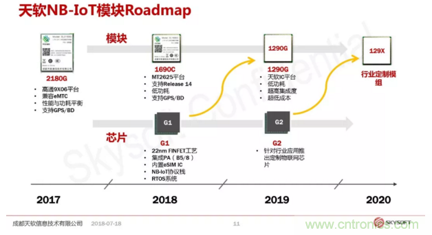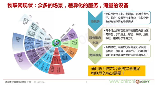 天软信息在NB-IoT这个产业链上扮演的角色是要打造一个端到端的运营方案,从芯片到运营整体,黄总指出,通用设计的芯片无法满足物联网的特定需要,物联网是一个海量兼容的设备,不同领域的设备有着完全不一样的形态要求,所以提出了一个观念叫做服务定义芯片。传统的芯片设计行业,芯片设计商定义一个芯片是根据市场需求和发展趋势来定义这个芯片的规格,然后交由芯片制造商去做具体的制造的工艺设计规划,而现在的模式是把设计服务这块独立出来,也就是说真正了解市场,接触这个市场对这个行业发展把握非常精准的一些公司,他们会提出来定义具体的一款芯片需求,定义出来的芯片交到以前的芯片设计公司来完成设计的服务,芯片制造商来完成这个芯片的制造,天软信息现在正在走的就是这样的模式。