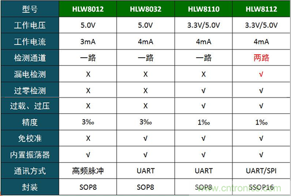三、HLW8012/HLW8032/HLW8110/HLW8112对比表