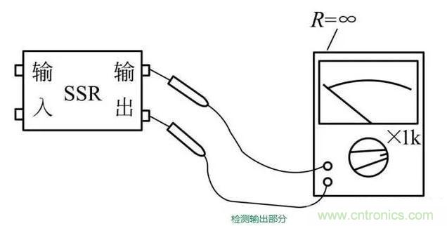 断开固态继电器输入端的工作电压后,其输出端两引脚之间应截止,万用表表针指示为无穷大。