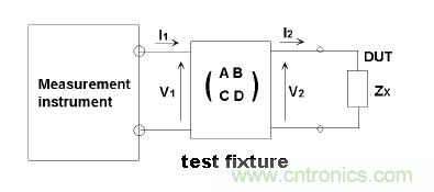 射频电感电感量测量的原理图如上,对于测试夹具的残留因素和离散因素对测量系统的影响,行业的通用做法是用下面所示的F参数来描述: