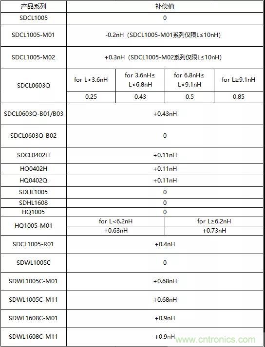 顺络电子射频电感的补偿值在产品Datasheet中都有注释。