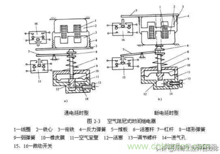 空气阻尼是时间继电器:主要的延时原理是利用气囊式阻尼器,线圈得电以后,释放或者吸合阻尼器,空气通过微小孔缓慢进入,到达时间以后,实现接通断开作用;
