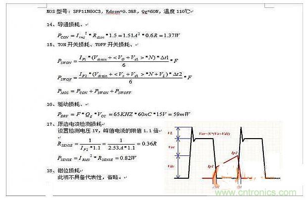 (关于开关损耗和导通损耗,上面的计算方法应该是正确的,参考《精通开关电源》第5章。最有可能会出现的问题是,测量的准确性如何,因为这会导致计算值与实际值相差2--5倍。)
