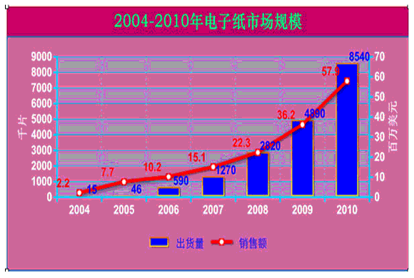 表1 2004-2010年电子纸市场规模(资料来源:富士chimera总研)