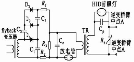 此电路一般要求匝数比很高。因高压线圈流过灯电流,所用导线不能太细,这样会使高压变压器体积增大。采用并联方式可将高压侧线圈导线做得较细,但灯需串联另外的镇流电感,这样,镇流器系统的体积也会很大。