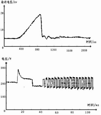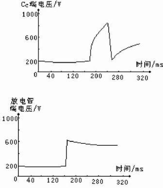 一旦Cc 的端电压使放电管击穿,将Cc中的能量转移到高压变压器的副边,在灯端产生高压,其电压值由变压器副边的电感和电容、灯状态及压敏电阻和线路电阻所构成回路的时间常数决定。