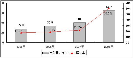 - LED显示屏市场到2008年,中国OLED出货量达到64.2万片,同比增长60.5%