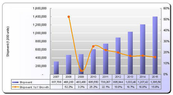 - 2009年估计出货将仅超过约4.8亿片,较2008年微幅成长3.3%;手机采用触控面板比重将成长到51%。