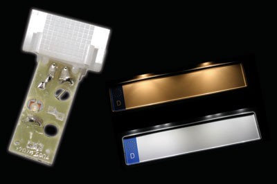 用于发光指示的LED在当今汽车照明应用中被大量采用。它们可以被集成在门把手附近、用于钥匙孔照明,或者后视镜上的转向闪灯,以及踏板照明和杯架照明等。发光指示的形状可以非常简单(直接透光),也能做得非常复杂,如图1所示,来满足精确照明的需要。