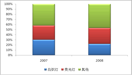 图:2007-2008年中国电光源市场结构比例图