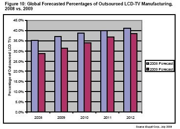 - 2009年外包的LCD-TV比预期的少5.6%