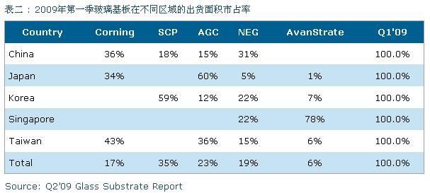 而日本前三大主要玻璃基板供货商包含:Asahi(AGC, 旭硝子)在2008年第四季占22%,而2009年第一季上升到23%;Nippon(NEG, 日本电气硝子)在2008第四季占18%,而2009年第一季也上升到19%;而AvanStrate’ 在2008年第四季占5%,而2009年第一季同样也上升达6%。