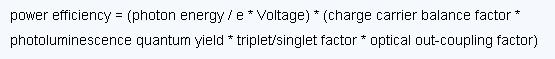 所谓功率效率值主要是指量子效率(quantumefficiency),除上操作电压后获得的百分比。根据上式可知即使有高的量子效率,功率效率值则会随着高操作电压而减少,亦即增大操作电压,其结果只是补偿注入与传输carrier时的损失(因各层有限的传导率),对功率效率并无实质助益。