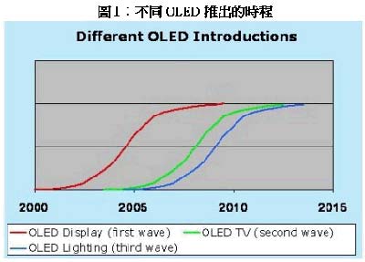 目前已商品化OLED显示器,可分为小分子OLED(SM-OLED)搭配荧光体与被动式矩阵(PassiveMatrix)基板;高分子(polymer)+被动式矩阵基板:以及主动式小分子OLED构成的小型OLED显示器等等。上述OLED显示器主要是应用在移动电话与数字相机、PDA等领域。