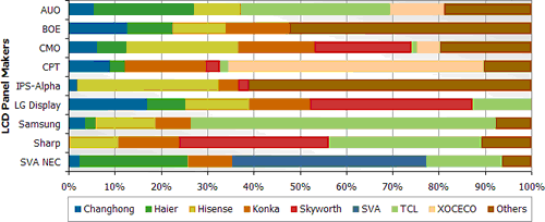 - 在前六大中国电视机品牌中,LG Display位居第四大液晶电视面板供货商,第二季有39.3%面板出货给Skyworth。