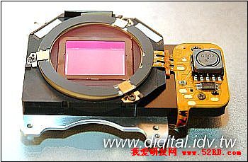 OlympusE1CCD感光套件(包含超音波除尘器)放大器位置和数量比较CCD和CMOS的结构,放大器的位置和数量是最大的不同之处,会在下一讲CCD感光元件工作原理(上),提及完整的感光元件作业流程。此讲中,Mr.OH!简单地解释:CCD每曝光一次,自快门关闭或是内部时脉自动断线(电子快门)后,即进行画素转移处理,将每一行中每一个画素(pixel)的电荷信号依序传入『缓冲器(电荷储存器)』中,由底端的线路导引输出至CCD旁的放大器进行放大,再串联ADC(类比数位资料转换器)输出;相对地,CMOS的设计中每个画素旁就直接连着『放大器』,光电讯号可直接放大再经由BUS通路移动至ADC中转换成数位资料。