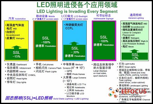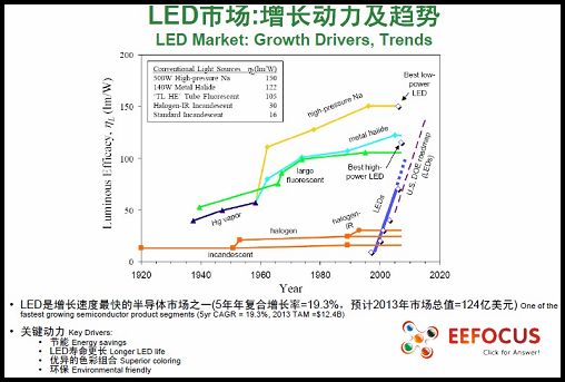 Laurent Jenck 说LED今日的发展态势像极了昔日的IC产业,前期主要集中在军队、科研等成本不敏感领域。然后随着成本和效率的改善,慢慢走近千家万户。随着应用的增 多,LED照明的价格/成本将逐步趋向消费应用。预计未来5年,LED照明将走进普通家庭。“随着量产而来的合理价格,LED未来的发展市场还是可见一斑 。”