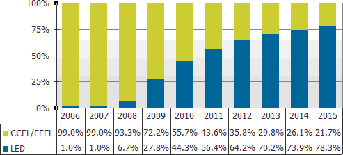 - 到了2015年,LED面板出货量渗透率更将达到78%水准