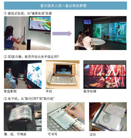 显示器领域的技术人员一直以来都有三个梦想:壁挂式电视、3D显示器及电子纸(见图4)。