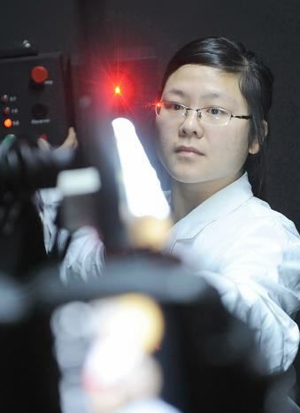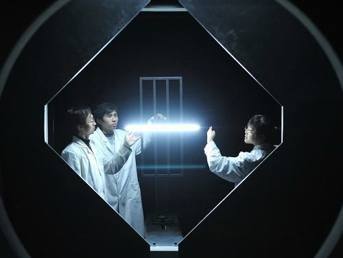 图:天津工业大学半导体照明工程研发中心的科技人员在测试LED灯光通量大小