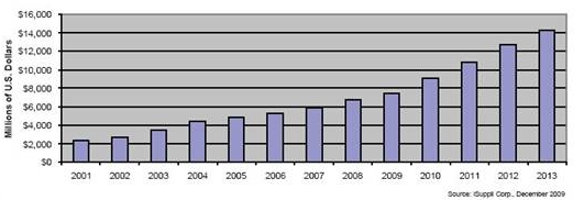 到2013年,全球LED市场将达到143亿美元,比2009年增长近一倍。