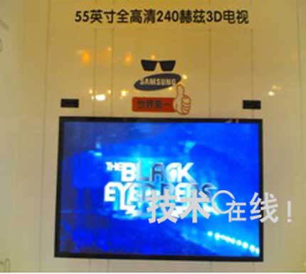图4三星展出的240Hz 刷新率的55英寸全高清3D电视机