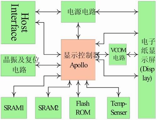 显示控制器Apollo芯片是NXP公司开发的一种TFT(thinfilmtransistor,薄膜晶体管)主动矩阵(activematrix)电泳(Electrophoretic)显示的显示控制器,是电泳显示参考系统电子设计的一部分。Apollo芯片适合800X600像素,支持1-bit和2-bit显示。屏幕高宽比(aspectratio)为4:3,同时驱动源极驱动(sourcedriver)和栅极驱动(gatedriver);支持握手协议的8位并行双向异步数据总线接口,主接口最大通信速率是10Mbytes/s。