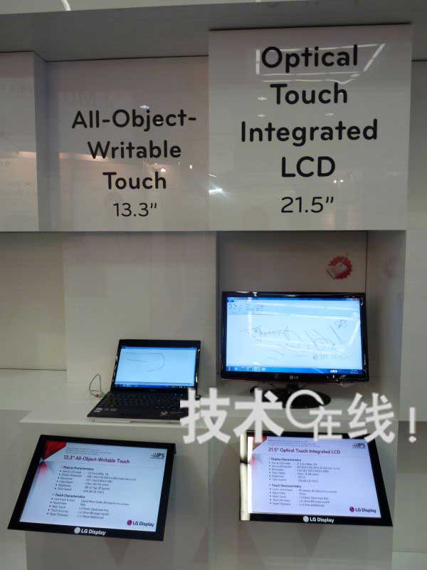 嵌入光学式触摸面板功能的13.3英寸液晶面板,以及内置触摸面板功能的21.5英寸液晶面板(LG显示器)