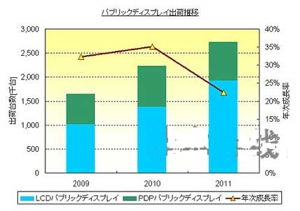 公共显示器以数字标牌(电子看板)为代表。在机场、车站、购物中心以及商业区等公共场所显示和发送信息的公共显示器市场,作为继笔记本电脑、显示器和电视机之后的第四个大屏幕FPD市场,今后有望出现增长。