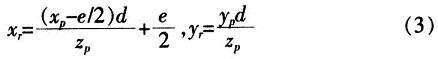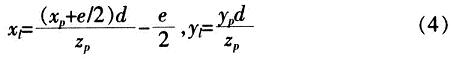 将式(2)带入式(1)得点P在投影平面的坐标(xr,yr):