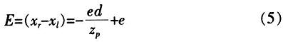 由此可见,当zp>d时,0<E<e,此时为正视差;当zp<d时,E<0,此时为负视差;而当zp=d时,E=0,此时为零视差。采用双中心投影算法,设置双视点就可获取三维空间中物体的左右眼图像,从而生成立体图像对。
