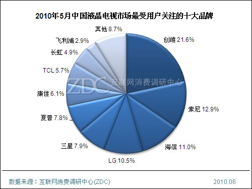 (图)2010年5月中国液晶电视市场最受用户关注的十大品牌