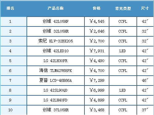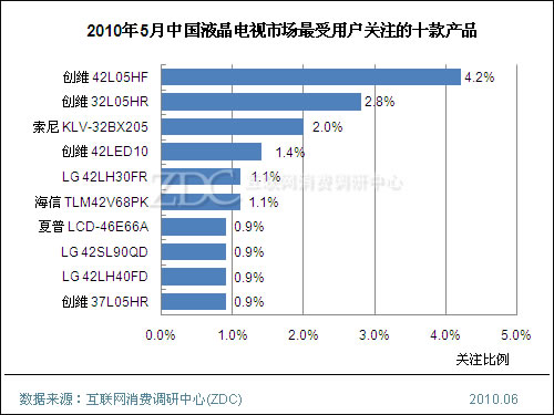 (图)2010年5月中国液晶电视市场最受用户关注的十款产品