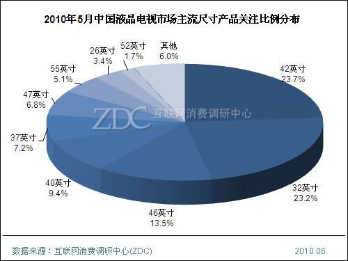 (图)2010年5月中国液晶电视市场主流尺寸产品关注比例分布
