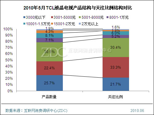 (图)2010年5月TCl液晶电视产品结构与关注比例结构对比