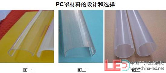 PC罩是有几种截面形状的,有小于半圆(图一),有半圆形(图二),也会有正圆(图三),与之配合的铝挤型也会与之对应(图三除外)。图一和图二的均不是整圆,所以均会有铝挤与之在后面配合。此种结构适合使用贴片式的芯片,后面增加的铝挤能有效的把LED产生的热量及时的散出去。图三为整圆的,此结构不使用铝挤,所以此种结构适合采用插件的灯珠。(如上图所示)