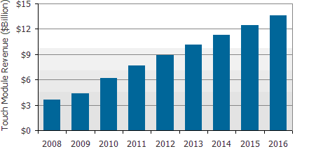 - 触控面板已成为数十亿美元产业,且仍处于高度成长中