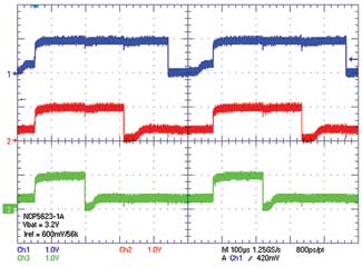图5中的波形源自工业应用,它展示了嵌入在所选器件中的三个PWM的特性。三个LED采用一个共同低频时钟控制,并带有一个占空比设置来适应给定应用。这很明显能够独立地减弱或增强每个PWM,范围在0~100%的占空比之间,而ILED峰值电流为恒定。