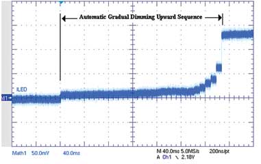 正如我们能够观察到的,ILED电流以准指数曲线形式增加,这种情况足以很好地补偿人眼的敏感度。
