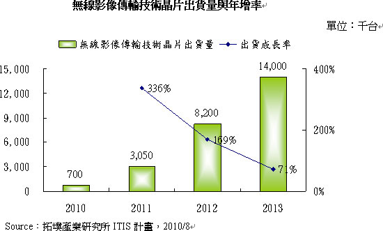 - 2010年无线影像传输技术晶片出货量为70万组