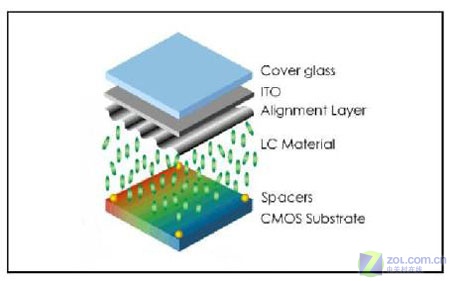 LCOS投影技术最大的特色在于其面板的下基板采用矽晶圆CMOS基板,由于下基板的材质是单晶矽,拥有良好的电子移动率,而且单晶矽可形成较细的线路,因此比较容易达成高解析度的面板。
