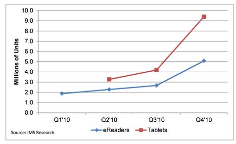 - 2010年电子书阅读器全年的增长量为116%
