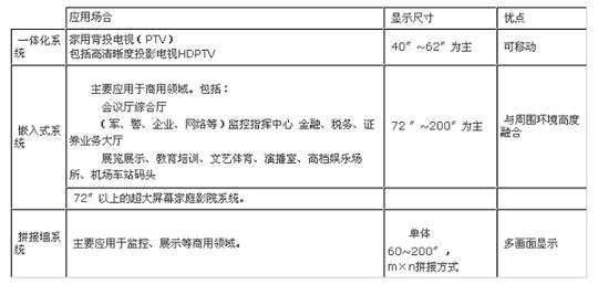 我们看到,从CRT到LED,实现了大屏幕显示;从LED到正投影,实现了大屏幕、高清晰度显示;从正投影到背投影,人们实现了高质量的大屏幕、高清晰度显示。只要求实现大画面显示、高清晰度显示、多媒体输入,都不难。但要同时实现这三种要求,非背背投影莫属。背投影显示技术很容易做到大画面、多媒体、高品质显示,代表着显示技术的主要发展方向,享有广阔的市场和光明的前景。