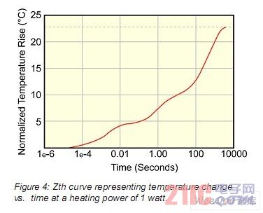 在电子行业,术语“Z”代表阻抗,在我们的例子中代表热阻抗。在热阻抗的曲线中,其表示温差除以热功耗的值。因此,图4中的Z曲线表述了对于1W热功耗的温度改变。