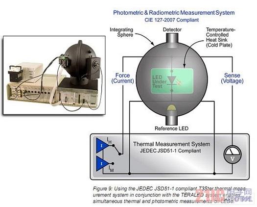 当TERALED以单机模式使用时,它可以完成光度测量。当结合T3Ster系统时可以进行热和光度测量。图9是TERALED和T3Ster系统一起使用的简图。