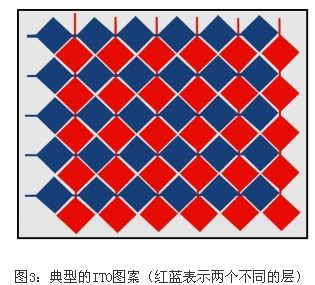 在完成了机械评估之后,必须为触摸屏选择一个合适的基底。图3 显示了投射式电容触摸屏的一个典型ITO图案。