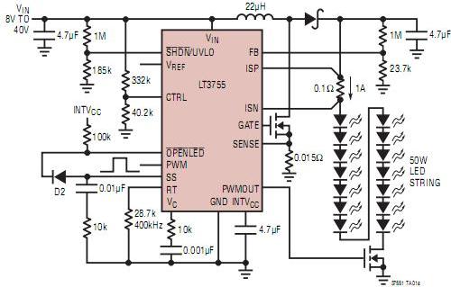 - 采用 LT3755 的 50W 前灯电路设计