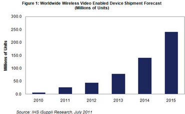 据IHS iSuppli公司的报告:“From Wi-Fi to Wireless HDMI: Video Technology Battle Rages On”,无线视频技术正在从联网家庭走向移动领域,促使未来五年全球无线视频设备的出货量将增长近39倍。