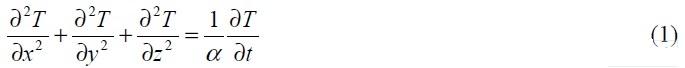 其中:T 为温度;t 为时间;x, y, z 空间三维坐标系;α 为热膨胀系数,α 满足方程: