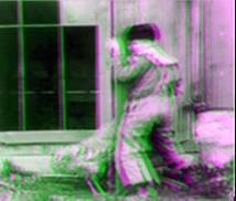 最传统的3D眼镜看3D效果,如果不戴眼镜就会产生很虚的画面,青色在红色的前面,或者红的在青的前面,红色代表了左眼看到的画面,青的代表了右眼看到的画面。正是因为它们在水平上有一定的位差和视差才导致有3D的感觉,3D画面如果没有做好给人的感觉会很差。大家在电影院看到的3D都不是红跟青的眼镜来看。家里的电视会有主动式的3D眼镜,通过隔行扫描,第一场传的是左眼的画面,第二场传的是右眼的画面,来了左眼相当于把右眼闭上,大家会获得左眼的画面,来了右眼会把左眼闭上,通过主动式的眼镜可以获得左眼和右眼的图像,最后到脑子里就是3D的感觉,现在市面上有比较多的3D电视。在电影院看到的,左眼通过水平、右眼通过垂直的把视频画面传给大家,不管哪种方式,最基本的会有左眼和右眼两个画面,依据是人眼睛瞳孔之间有一定的差距,左眼和右眼之间的距离是60-65毫米之间。